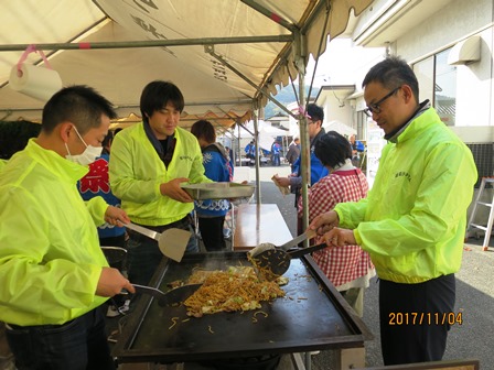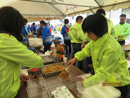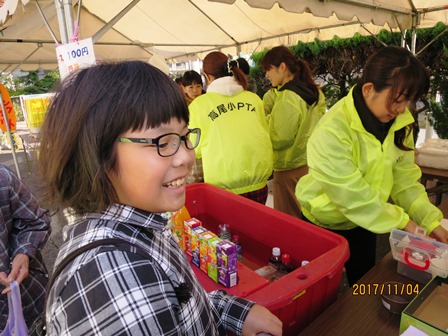 11月4日(土)は高尾公民館祭でした。高尾小学校のPTAも、恒例の焼きそばとジュースのお店を出店しました。はじめは寒いせいか、人出も少なく売れるかどうか心配だったのですが、「大丈夫です!絶対全部売れますから。」と事業部員さん。そのとおり、急に品物が間に合わないほどの売れ行きで、焼きそばを焼く人、詰める人、売る人の流れ作業は非常に忙しくなりました。助っ人にPTA会長さん・副会長さんも来てくださって助かりました。お昼ごろには完売し、大成功でした。売上金はPTA活動費に繰り入れます。事業部の皆さん、お疲れ様でした。