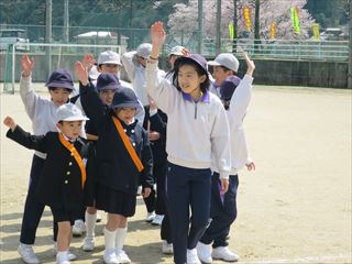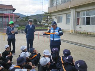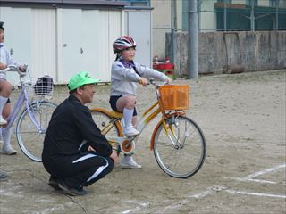4月12日(水) 新1年生を加えて、全校児童で交通教室を行いました。新見警察署奥名巡査部長さん、新見市交通指導員の大月さん、田村さんを講師に安全な歩行の仕方や自転車の乗り方を学習しました。始めに運動場で信号機を使って横断の仕方を学習しました。その後、1~3年生は校外での歩行・横断練習、4~6年は運動場で自転車の横断や安全な乗り方を学習しました。「よく見て。安全確認。」との指導に真剣に学習しました。登下校や遊びに行くときには、今日の学習をいかして、毎日安全に過ごしてほしいです。