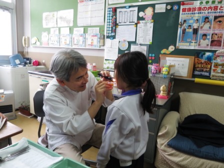 1年生も大きく口を開けて上手に健診を受けることができました。むし歯があれば早く治療し、歯磨きなどの予防もして、むし歯のない丈夫な歯を保っていきたいものです。