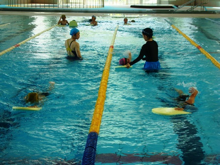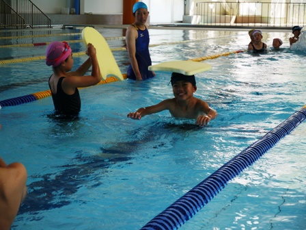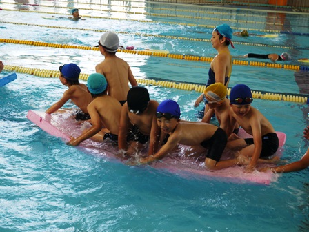 6月4日(月)1〜4年生が新見市の「げんき広場」へ行き、職員の方から水泳の指導をしていただきました。今年初めての水泳学習ということで、緊張と楽しみな気持ちでいっぱいだった子どもたち。バタ足や息つぎの仕方などをていねいに教えていただき嬉しそうでした。