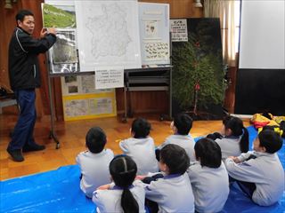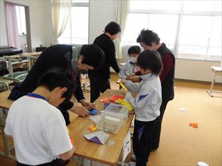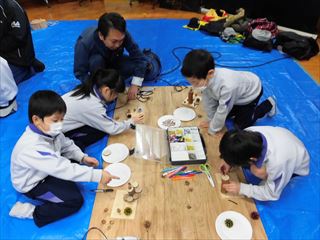 1月23日、1年生が森林技術支援センターで「森林教室」を行ました。木や森の話聞いた後、木工細工で楽しみました。最後にはお気に入りの作品を持ち帰り、大満足でした。1月24日、1年生が長寿クラブと一緒に昔遊びを楽しみました。最後に輪になって一緒にしりとりをしました。ほのぼのとしたひとときでした。同日、5年生が情報の学習で、にいみiチャンネルに出かけました。スタジオ見学の時は一人ひとりがアナウンサーになったつもりで原稿を読ませていただきました。いつも見るテレビ番組の裏を知るこで、たくさんの知識を得ることができました。