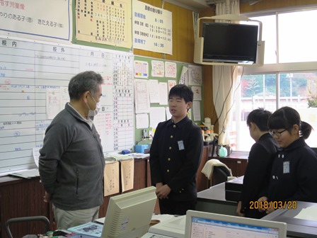 3月20日(火)6年生が一人ひとりが感謝の言葉を言って、完成した卒業文集を校長先生に渡しました。明日は春分の日でお休み、22日(木)がいよいよ卒業式です。最後の給食を食べ、少なくなった荷物を持って6年生は早めに下校しました。