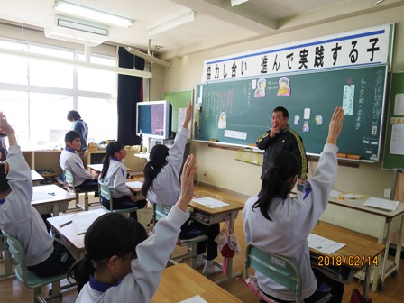 2月14日(水)平成30年度からの小学校における「特別の教科 道徳」の全面実施に先立ち、今日は5年生が研究授業を行いました。本時のねらいは「より良い友達関係を築くために相手の気持ちや立場を考えながら行動することの大切さに気づき友情を深めようとする心情を育てる」です。5年生は自分自身と関係付けながら、真剣に考え、理解を深めていました。