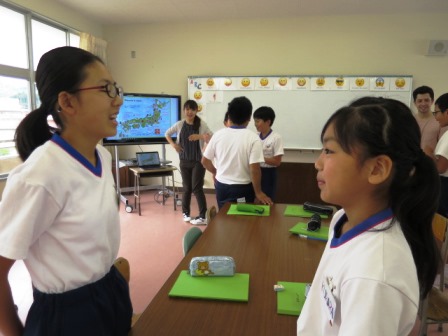 6月13日(水)今年度から英語専科の先生が高尾小に来てくださって、ALTの先生と英語の授業をしてくださっています。5年生と6年生がその授業を受けることになっています。今日は、3階に英語ルームも整備して、広々と楽しそうに学習をしていました。なるべく良い環境で自然に豊かに英語力を高めて欲しいと願っています。