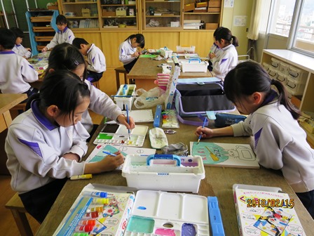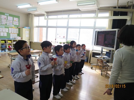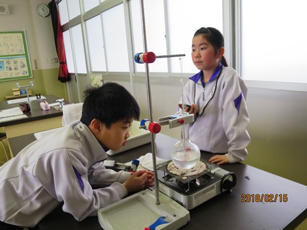 2月15日(木)今日は少し暖かい一日となりました。今日の授業風景です。1年生はハンドベルで「おもいでのアルバム」の演奏の練習をしていました。3年生は図工「コリントゲーム」で釘を打ったり絵を描いたりしていました。4年生は理科「水の温まり方」で水をフラスコに入れコンロで温めて2分毎に温度を図る実験をしていました。どの学年も欠席がなく充実した学習をしています。