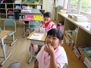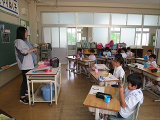 6月16日(金)3年生が、「歯のはたらきとむし歯予防」の学習をしました。はじめに動物当てクイズで歯の形とそれぞおれの歯の働きを知りました。そして自分の歯の染め出しをして、汚れが残りやすいところはどこかを調べました。感想には「みがいたと思っていたけどよごれがのこっていたのでちゃんと歯みがきをしたい。」「6歳きゅう歯をむし歯にしないようにしたい。」「鏡を見てチェックするようにしたい。」とありました。いい学習ができました。