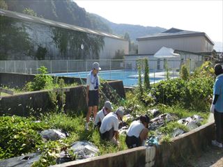 8月21日の日曜日、保護者の方々と4・5・6年生で、資源ごみ回収と奉仕作業を行いました。子どもたちは草取りと教室の掃除でした。