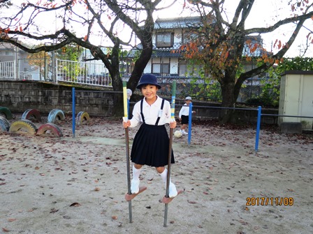 休み時間や放課後にサッカーや竹馬、一輪車をしてみんな元気に遊んでいました。竹馬では昨日まで乗れなかった子も上手に乗れるようになっていました。