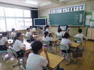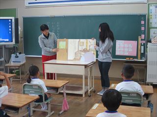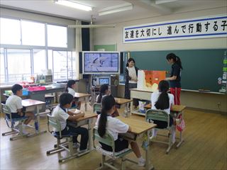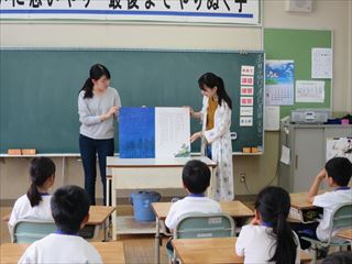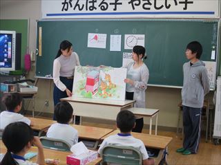 5月24日(水) 朝の学習「きびきびタイム」で新見公立大学の大学生の皆さんが読み聞かせをして下さいました。高尾小の子どもたちは初めて出会う、大学生のお兄さん・お姉さんに少し緊張気味でした。ですが、お互いに自己紹介をして本の読み聞かせが始まると目を輝かせて聞いていました。来週から毎朝水曜日に来て下さいます。子どもたちの楽しみがまた増えました。