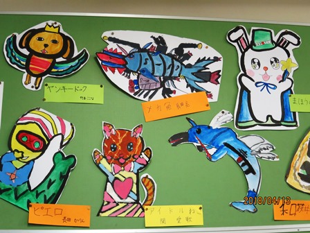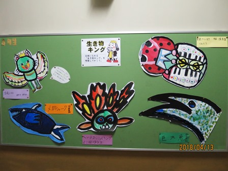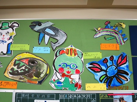 4月13日(金)4年教室の壁面には、ダイナミックで色彩豊かな絵が掲示されていました。