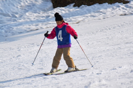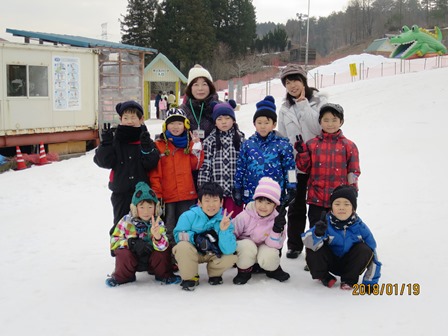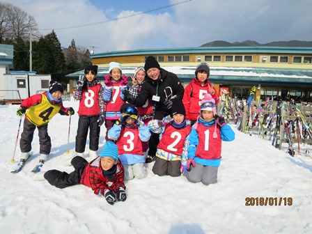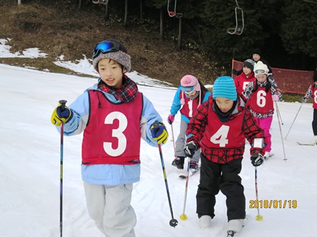 1月19日(金)今日は」1〜4年のスキー・雪遊び教室でした。暖かくスキー場は絶好の状態でした。3・4年生ははじめはスキーを履くこともおぼつかなかったのですが、転びながらも一生懸命がんばりました。そして、ハの字に開いて止まることや曲がることを赤木コーチ・二嶋コーチ・宮本コーチから教えていただき、とても上手になりました。午後には「楽しい!」と笑顔で滑るようになりました。