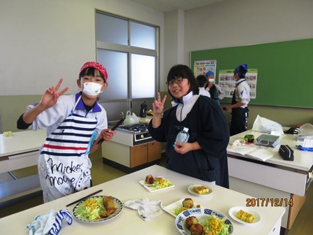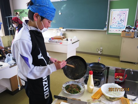 12月14日(木)6年生は家庭科の学習で、「1食分の食事(朝食)」の調理実習を行いました。3つのグループに分かれ、ビタミン・タンパク質・炭水化物などの栄養のバランスのよいおかずを考え、調理の計画を立てました。また、計画した内容を神郷調理場の河野栄養士さんに見ていただき、アドバイスも受けました。自分たちが考えた通りのおかずを作ろうと、意欲的に取り組みました。調理も片付けも手際よく、協力して行う6年生の姿に感心しました。試食の時には「美味しい。」「給食にもこの献立を出してほしい。」と言う声が聞かれました。