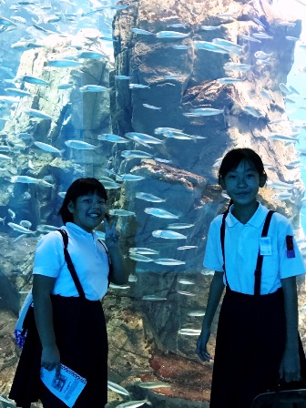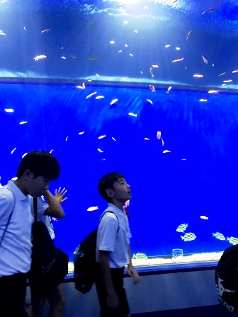 海遊館です。ジンベエザメの迫力に驚きました。初の買い物タイムで、家族や自分のためにお土産を買いました。