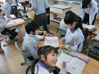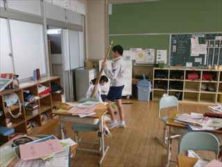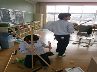 卒業前、6年生が全校のために活動してくれました。一つは「ほうきのごみ取り」です。通称Tほうきに付いた細かなごみを取ってくれました。自分たちでできることを考えてくれました。日頃思っていてもなかなかできないことでした。もう一つは「下級生との勉強」です。2年生の算数の時間、6年生の応援がありました。おかげで2年生は、すいすい学習が進みました。6年生、ありがとう!