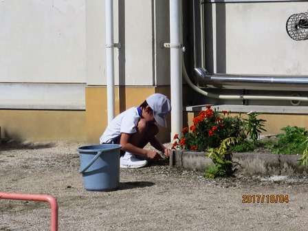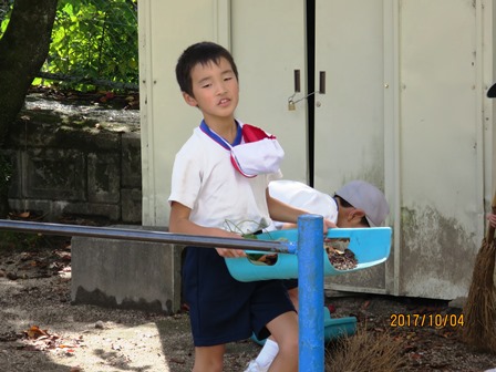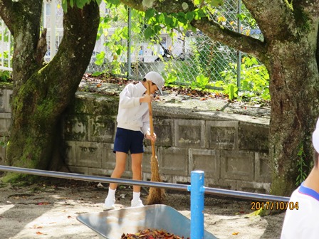 水曜の掃除は外掃除です。6グループに分かれて草取りや落ち葉掃きをしました。一生懸命頑張りました。