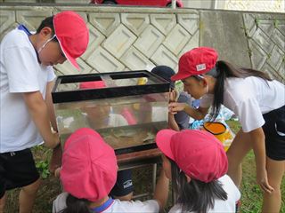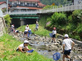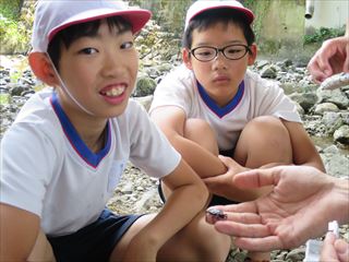 5月30日(火)、今日も30度を超える晴天です。5年生にとっては嬉しい暑さです。今日は楽しみにしていた「川の学習」。魚や昆虫などの水生生物を探して、川の水質調べをします。始めにアスエコの佐藤先生・新田先生から指標生物について教えてもらいました。その後、学校のそばの明智川へ。始めは上手く捕まえられなかった子どもたちも、次々と上手に捕まえられるようになりました。魚はムギツク、ヨシノボリ、カワムツ、シマドジョウ等々。その他にカワニナやサワガニをはじめ、ホタルの幼虫やヤゴもいました。きれいな川と分かってほっとした表情の5年生。最後には少しあったごみも拾って帰りました。佐藤先生・新田先生分かりやすいお話をありがとうございました。