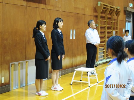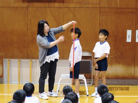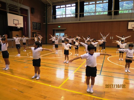 10月2日(月)10月になりました。高尾小学校では全校朝礼の前にラジオ体操をします。校長先生から「秋を感じるものは?」とたずねられると、「どんぐり」「さんま」「陸上記録会」「キンモクセイ」「日暮れが早い」などの言葉が上がりました。保健室実習の先生の紹介とソフトボールの表彰もありました。週番の先生から「正しい姿勢で生活しよう」の週目標のお話もありました。「立っている時や座っている時の姿勢を良くするにはどうしたらよいか」というわかりやすい説明にうなずきながら聞く姿が見られました。