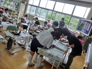 紹介が遅くなりましたが、今年度も学校支援ボランティアの方におせわになっています。7月は書写をお世話になりました。長半紙に書くのは1年間に2回です。上級生でも字の大きさやバランスには苦心します。そんな時、ボランティアの方に上手く書くポイントを教えていただき、子どもたちの字が、見る見る変わりました。ありがとうございました。