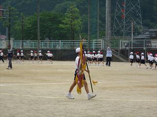 あとは、観て下さる保護者や地域の方々に感動を与えるような演技になるように練習を重ねていきます。開会式の練習では全員がきびきびとした行動を取り気持ちがいいです。