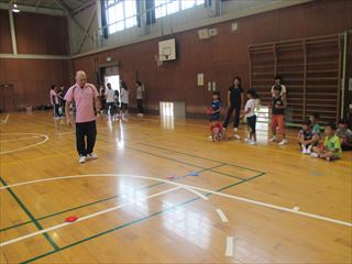 児童の活動を2つ、お知らせします。一つは2年生の学年支会活動です。9月11日(日)、体育館で行いました。新見市のスポーツ指導員の方を講師にお招きし、2つのスポーツを楽しみました。そのうちのトッチビーは子どもたちにも馴染みがありました。保護者の方と一緒にするのは滅多にないことです。子どもたちは保護者の方に勝とうと一生懸命でした。子どもたちも保護者の方もいい汗をかくことができた時間でした。