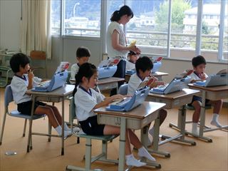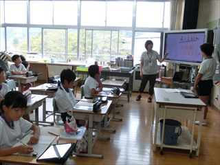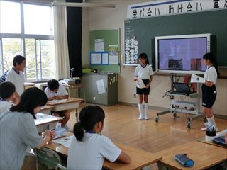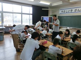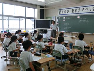 9月17日の土曜日に、参観日を行いました。この日は4つの行事を予定しており、盛りだくさんでした。授業参観では、1年生は音楽をしました。カスタネットのリズムに合わせての言葉遊びや鍵盤ハーモニカの演奏などで楽しく活動する姿を観ていただきました。2年生は算数でした。自分で筆算の問題を作り、それをクイズにして友達同士で答え合うといった、楽しく賢くなる活動でした。3年生は算数でした。タブレット端末を用いての説明を上手に行っており、家の人も感心でした。4年生は算数でした。黒板一面の問題をたくさん解く活動でした。子どもたちは驚きながらもいきいきと取り組んでいました。5年生は算数でした。電子黒板を使用しての説明でした。落ち着いた学習態度としっかりと考える姿はさすが上級生でした。6年生は学活でした。自分達で調べた修学旅行で訪れる場所の紹介と自主学習についての話でした。おdちらも6年生にとってはとても大切なことです。1年間のちょうど半分が過ぎました。学年当初と比べるとずいぶん成長しました。しかし、まだまだこれからも心身共にグンと成長する子どもたちです。