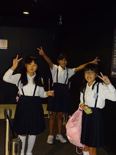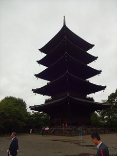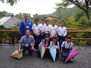 台風が後から追ってくる心配をしながら出発しましたが、予定通りの活動が全部できた2日間でした。初日はまず、東寺の見学をしました。東寺の方のご好意で普段入ることができない場所にまで入らせていただき、世界遺産を拝観することができました。次に京都の映画村に行き、昼食のカツカレーを食べ、グループで自由に見学しました。その次に金閣寺にいきました。どちらも台風の影響で、人が少なくゆっくり回り満喫することができました。教科書に載っていた金閣寺と比べてどうだったでしょうか?そして京都の新京極の宿に荷物を降ろし、買い物をしました。疲れていたのか、夜は、いつもより早めに眠りにつきました。