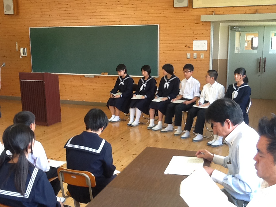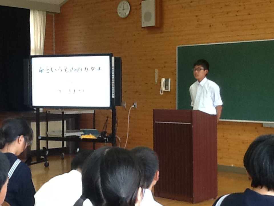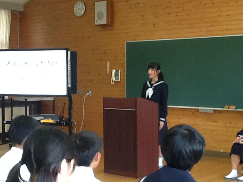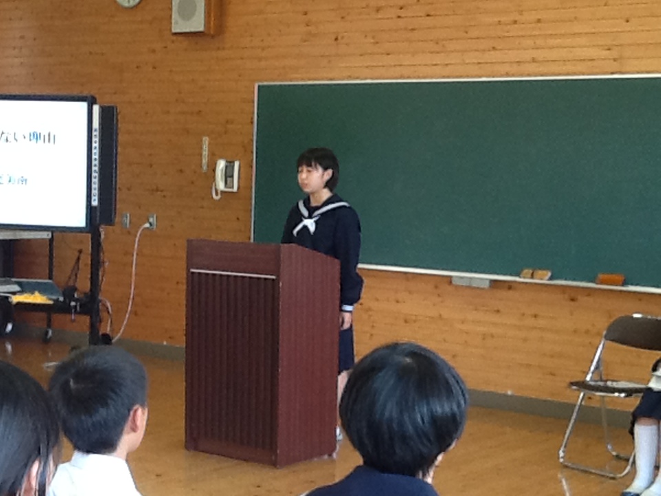 今日は,学級弁論大会で選ばれた生徒6名による校内弁論大会を実施しました。どの弁士の人も,これまでに身近に起こった出来事や体験したことについて,素直な気持ちで上手に語ることができていました。全校生徒の前での発表で緊張したことと思いますが,自分の意見を堂々と発表できる力は素晴らしいと思います。学校代表はまだ決まっていませんが,代表生徒は新見市弁論大会で頑張ってくれるものと信じています。