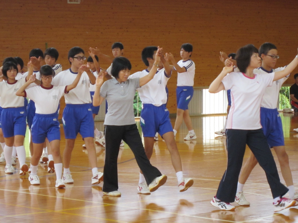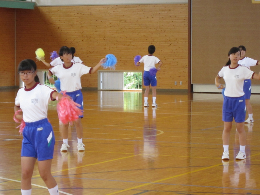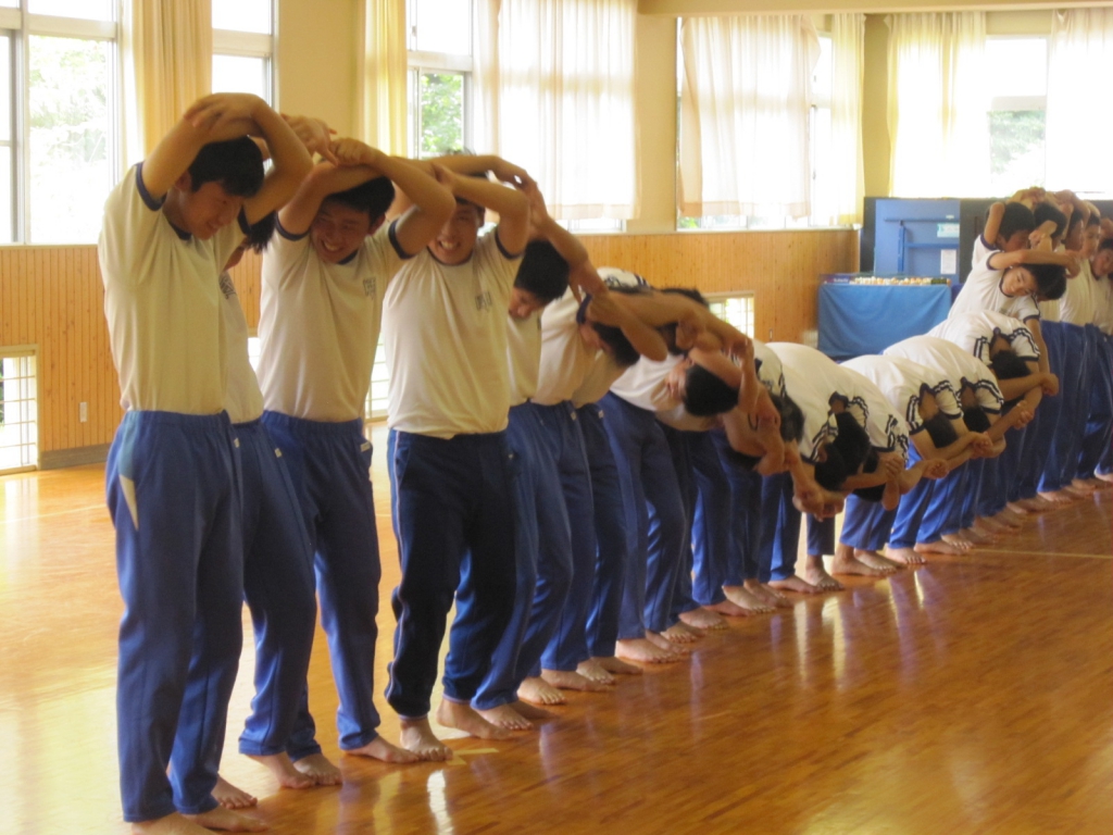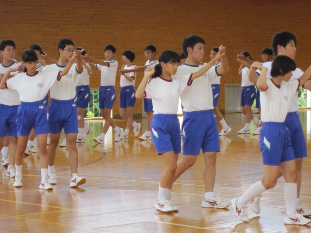 運動会の練習が本格的に始まりました。今日は午前中,全校生徒によるフォークダンスと男子の組体操,女子の創作ダンスの練習に取り組みました。フォークダンスは,硬さがみられぎこちない動きでしたが,慣れてくるとリズムに合わせ上手に踊ることができていました。組体操,創作ダンスともこれから徐々に完成度が増してくると思います。当日に期待してください。