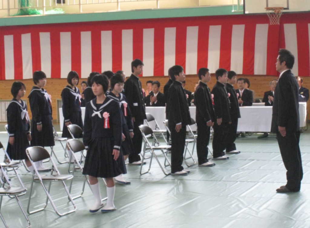 学校長の言葉、教育委員会のメッセージ、来賓の方々のお話を聞き、中学生になった