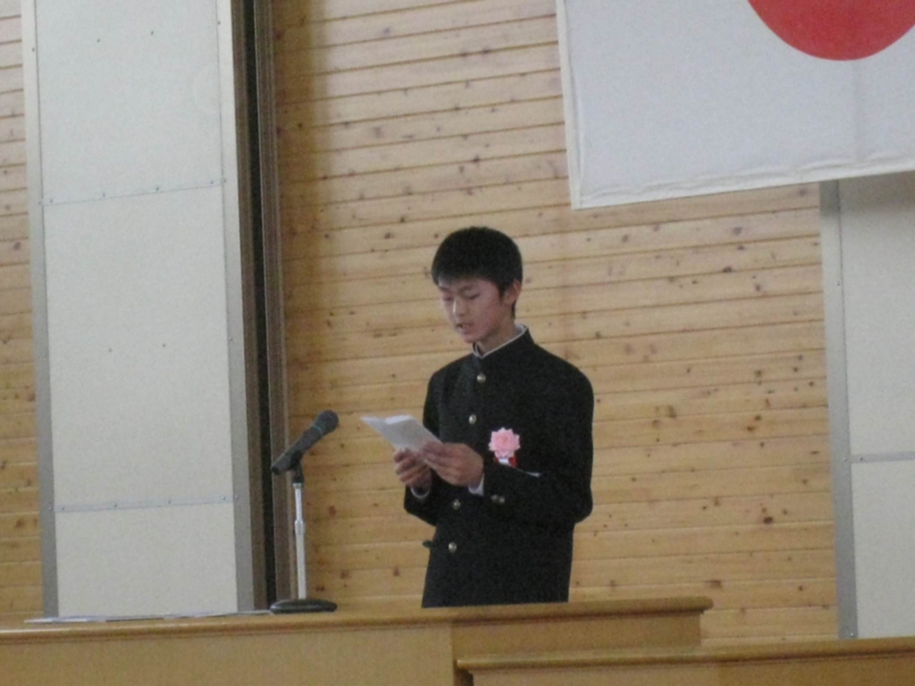 上級生の代表として生徒会副会長が迎える言葉を述べ、これに新入生代表が誓いの言葉で答えて式を終えました。