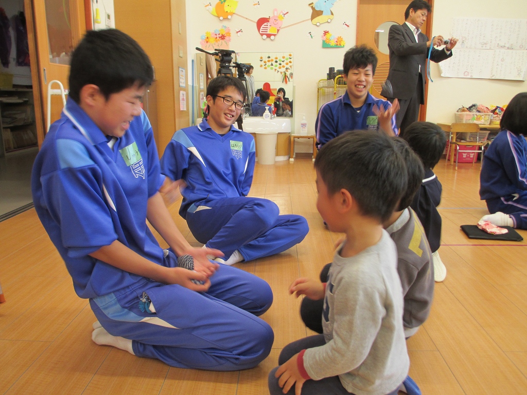 昨日,3年生が哲西認定こども園を訪問しました。この行事は,幼児との触れ合いを通して幼児への関心を高め,関わり方を考えることにより幼児の理解とともに優しさや思いやりを培うことを目的として毎年実施しているものです。9月の乳幼児ふれあい体験で,幼い子どもへの関わり方を経験している3年生でしたが,幼児特有の予期せぬ反応に戸惑う姿も見られました。人と関わる力をこれからも身につけていって欲しいと思います。