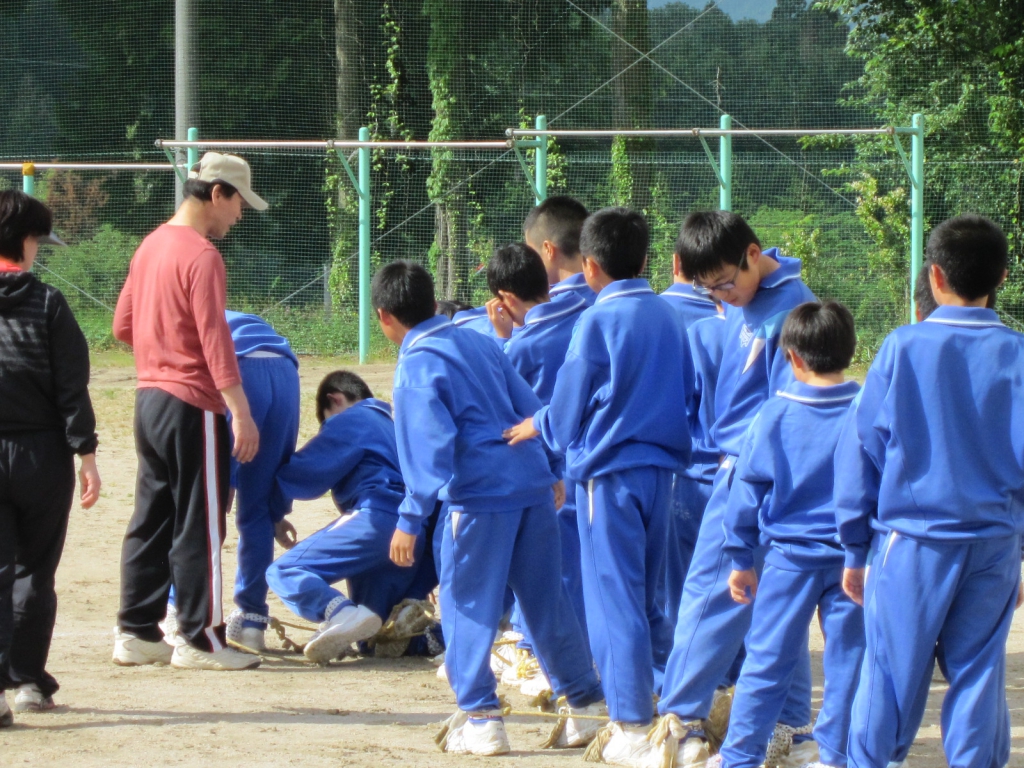 毎年,恒例になっているムカデ競争大会(6月3日(金)開催)に向け,朝練習が始まりました。生徒たちの掛け声と先生方の檄と声援が校庭に響き渡る中,生徒たちは各学年に別れて一生懸命練習をしています。経験の差で3年生が有利ですが,何が起こるかわからないのがムカデ競争です。頑張れ生徒諸君。