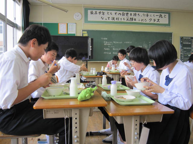 今日は,毎日,お世話になっている給食の様子を載せました。各学年とも給食の準備は手慣れたもので,大変スムーズな用意ができていました。少し不思議だったのは,鮭の食べ方で,まず,皮を全部食べてから身の部分をたべるという人が意外に多いということでした。あと,箸の持ち方で気になる人が若干いましたが・・・。