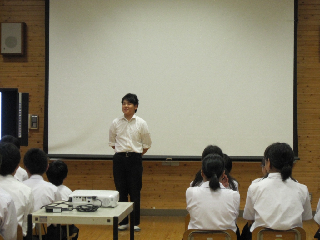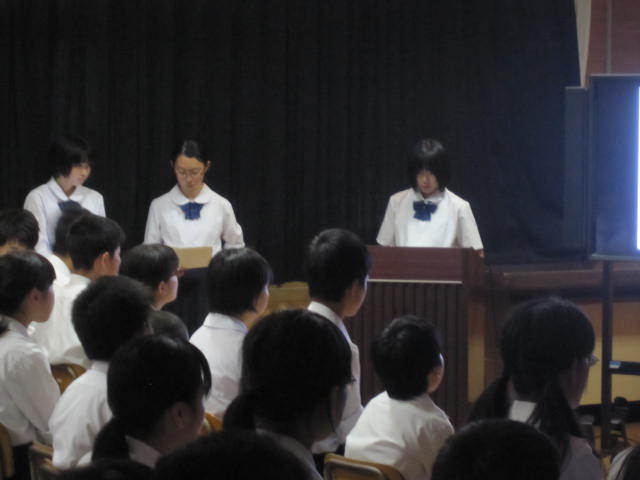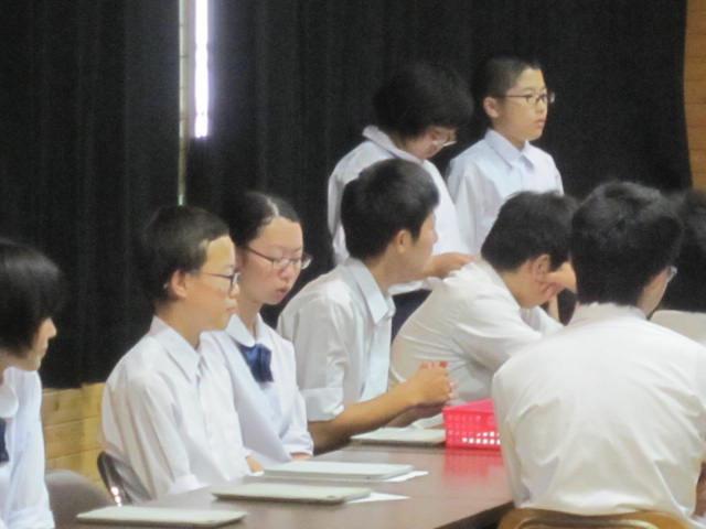 日(月)に生徒会健康委員会主催の健康集会を開きました。今回はこれまで中高年の病気だと思われてきた糖尿病や高血圧,高脂血症などが,実は中学生や高校生の子どもたちにも広がりを見せていることから,生活習慣病の予防について考えました。健康委員会の説明に続いて,iPadを用いての○×クイズ等内容にも工夫がみられ,日ごろの生活を見直すいい時間となりました。この集会に向け,6月初めから準備を始めてくれた健康委員会のみなさん,本当にお疲れ様でした。