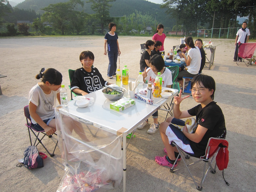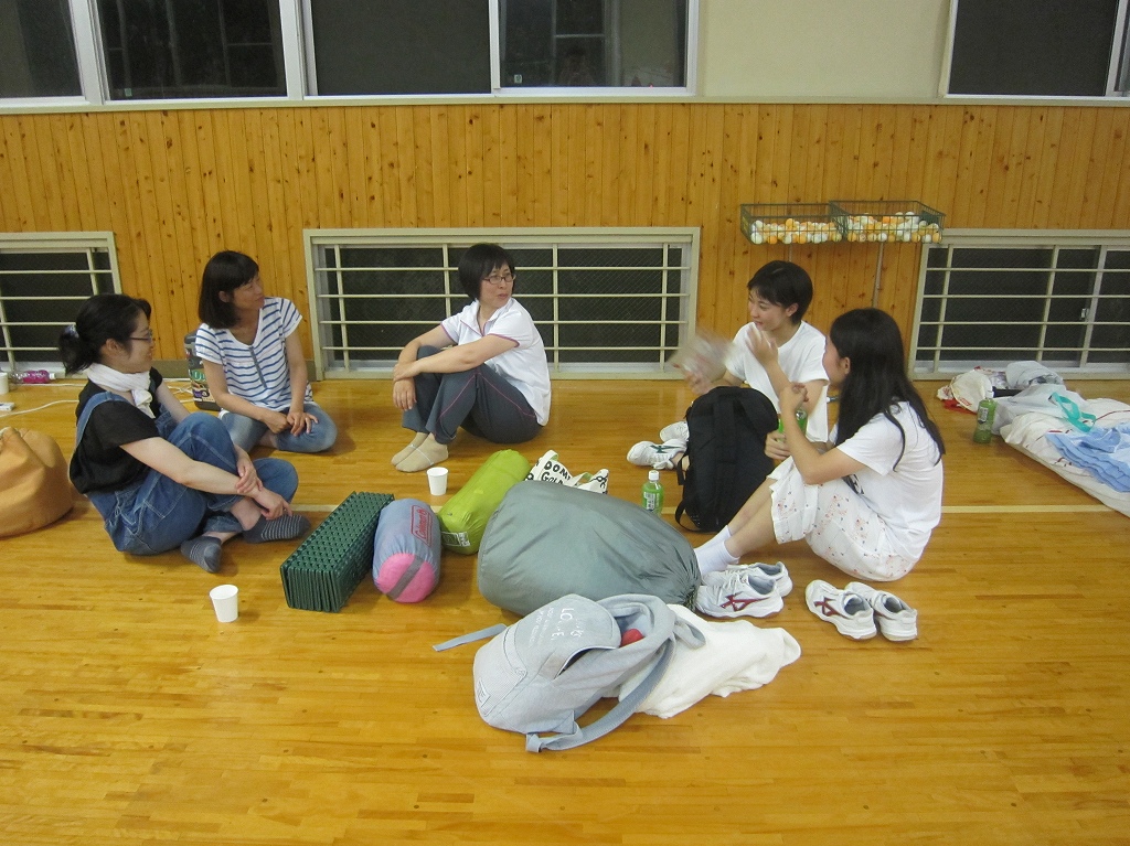 23日(土)~24日(日)にかけて,3年生の生徒,保護者,兄弟,教職員が飲食をを共にし,学校に1泊するという支会活動を行いました。初日は,みんなでバレーボールやバスケットボールを楽しんだ後,保護者の方が用意してくださったバーベキューで夕食を共にし,しばらくくつろいだ後,体育館へ移動し就寝,翌朝は明らかに睡眠不足という生徒たちでしたが,日頃体験できない経験をし満足そうな表情が印象的でした。