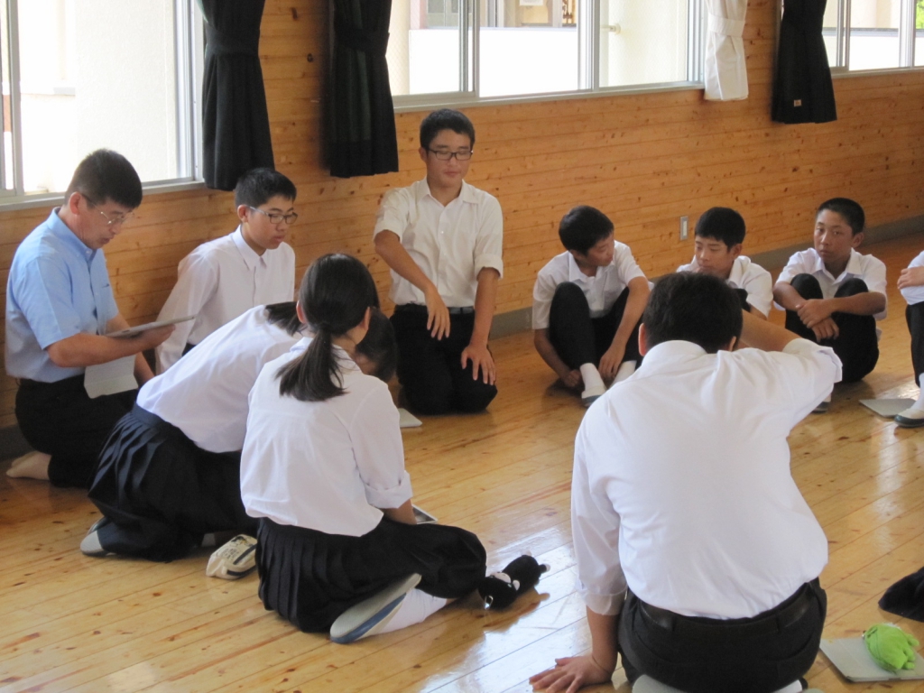 本日は,夏休み中で唯一の全校登校日でした。部活動では,ほとんど毎日,学校に来ている子どもたちですが,1年生から3年生までが制服姿で一堂に会するのは久しぶりです。宿題の進捗状況は個人でかなり差があるようですが,どの生徒も元気そうな表情で安心しました。掃除に続いて宿題点検,その後,紅白に別れて運動会の選手を決めました。また,23日に実施する地域奉仕活動の最終確認等も行いました。