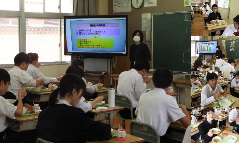 6月13日(火)に田邊栄養教諭を招いて、本校の2年生は、食育の指導をしていただきました。今回は、朝食の役割や朝食と学力の関係などについて教えていただきました。これからも食事を通して心も体も大きく成長してほしいと願っています。田邊先生、ありがとうございました。